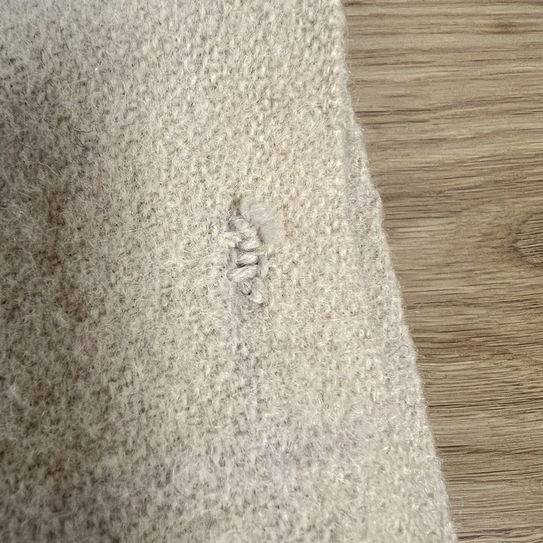 Vintage Jacobs wool Blanket. Beige with faded purple grid. Some moth damage, charmingly mended over time.