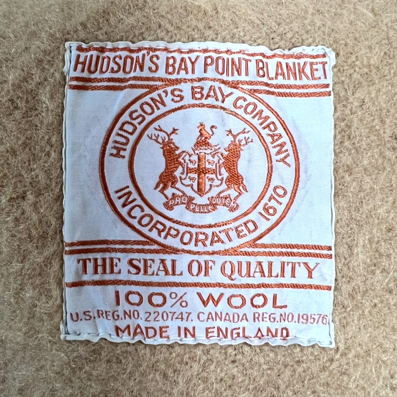 Vintage Hudson's Bay Point Blanket. 4 points. Camel color with fawn stripe and points. Excellent vintage condition.